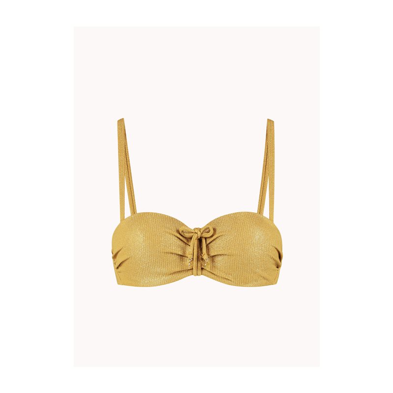 Het Golden Hour regular bikini broekje van Cyell is uitgevoerd in een gouden sparkling structuur stof. Dit dames rio bikinibroekje heeft een normale taille en het bikinibroekje is afgewerkt met flatterende plooidetails in de tailleband. Je combineert dit broekje met de bikinitops uit de Golden Hour. Met deze look kun je shinen aan het strand!