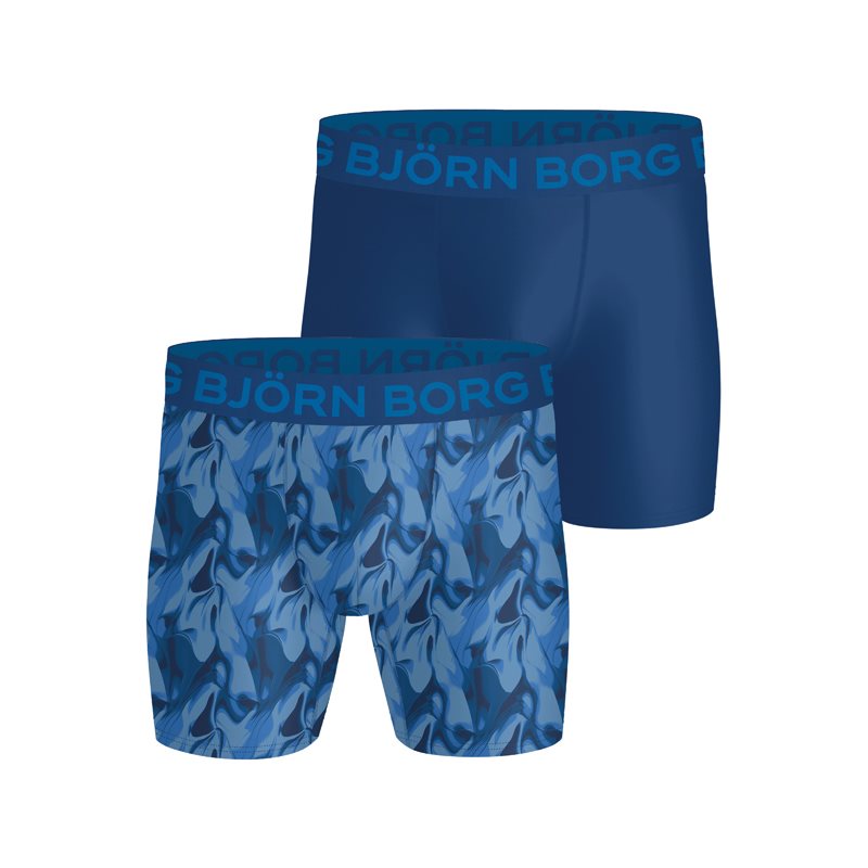 Het 2-PACK Sports Microfiber Boxer ondergoed van Björn Borg is speciaal ontworpen om in alle comfort te trainen. Deze serie heette voorheen Performance. De microfibre shorts hebben een uni zwarte kleur met een zwarte logoband de andere heeft een zwart met grijs en blauwe print. Ze hebben verschillende kleuren logobanden. De shorts zitten als gegoten en zijn gemaakt van zacht stretchmateriaal met vochtafvoerend Hydro Pro-materiaal dat je heerlijk droog en comfortabel houdt. Ze zijn afgewerkt met gladde naden en elastische band om schuren te voorkomen, en een iconische elastische logotailleband van zachte microvezelstof voor extra comfort. Perfecte boxershort voor sporters!